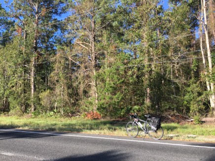 La etapa de hoy arrancó temprano y basicamente fue siguiendo la Ruta 17, salvo cuando East Coast Greenway sugirió caminos alternativos, que generalmente están muy bien elegidos porque recorren parajes tranquilos, pintorescos y sin tráfico. Solo uno de ellos fue medio complicado porque era de tierra (arena compactada), y mi bicicleta está preparada para ruta, con gomas finas e hiperinfladas, que no se desenvuelven bien en la arena. Pero lo encaré con optimismo y todo anduvo bien.