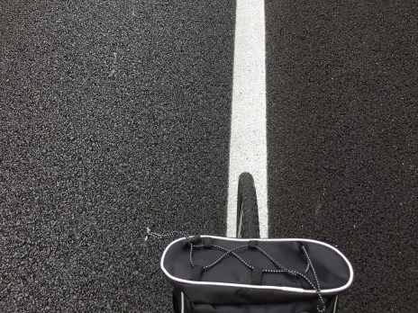 La gran diversión del día consistió en intentar –durante muchos kilómetros- rodar sobre la línea blanca demarcatoria de la senda de bicicletas sin caer a los costados. Es notable cuánto más lisa es la pintura que el asfalto, así que merece la pena entrenarse en ser un buen equilibrista. Sobre el final del juego era capaz de andar unos 500 metros sin caerme, y descubrí que el secreto es ir muy rápido y con la vista colocada unos diez metros por delante de la bicicleta.